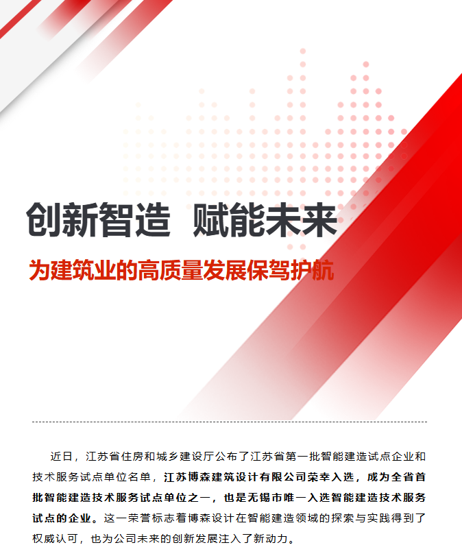 博森简讯 | 博森设计成功入选江苏省首批智能建造技术服务试点单位